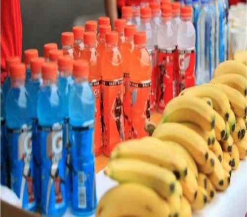 所以需要运动饮料、电解质泡腾片和电解质胶囊(盐丸)等电解质补给品。当然还有橘子汁、番茄汁等等,也可以每1-2小时,喝1-2升的水。