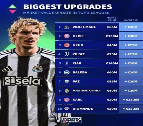 最近一期五大联赛球员身价更新里,前十名的涨幅把风向写得很清楚:英超的“终端定价力”和德甲的“孵化加速器”同时发力,年轻面孔成了最大赢家。你会看到,U21不只是挤进榜单,而是在涨幅区间里占据主动;而少数已站稳一线的23岁档,也在强队平台与欧战曝光下继续被“抬价”。谁是真正的联赛红利受益者?是高曝光的英超,还是更敢给机会的德甲?往下看数据,答案不止一个。
