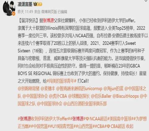 据张博源父亲透露,张博源收获伊利诺伊大学offer。