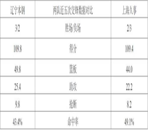 上赛季两队交手2次,辽宁本钢2胜0负。