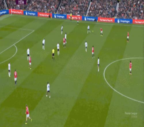 这一点很重要,说明曼联仍是典型的四后卫思路,边后卫覆盖宽度,后腰需要落到中卫和边后卫之间填补空当。