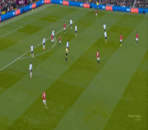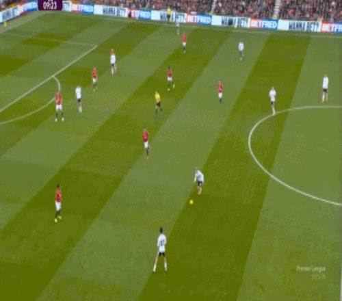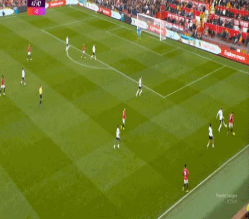 这显然是找对进攻方向的合理收获,但是,曼联的防守压力并未因此减轻,富勒姆在这一侧承压,但也能在这一侧直接向前,不管是在丢球前: