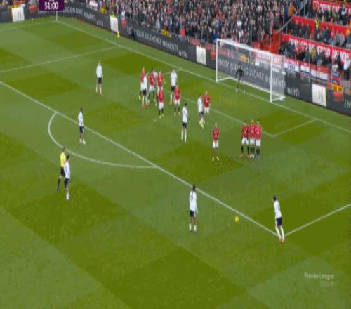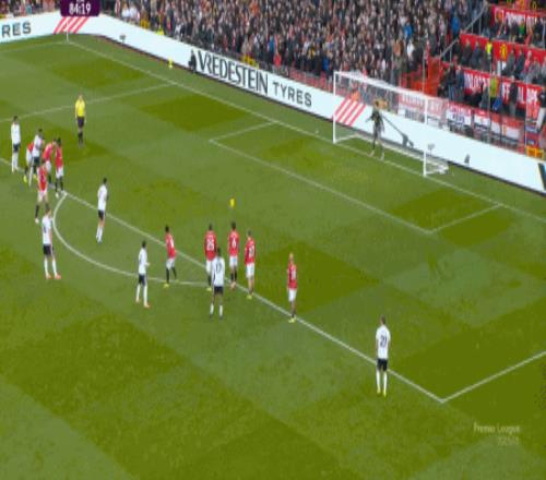 虽然罚球位置从点球点变成了禁区外,但曼联还是通过这次定位球完成得分,卡塞米罗力压的,其实还是昆卡: