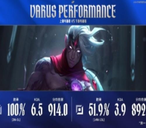 赛事数据:LPL第一赛段至今上单维鲁斯两场100%胜率下路51.9%